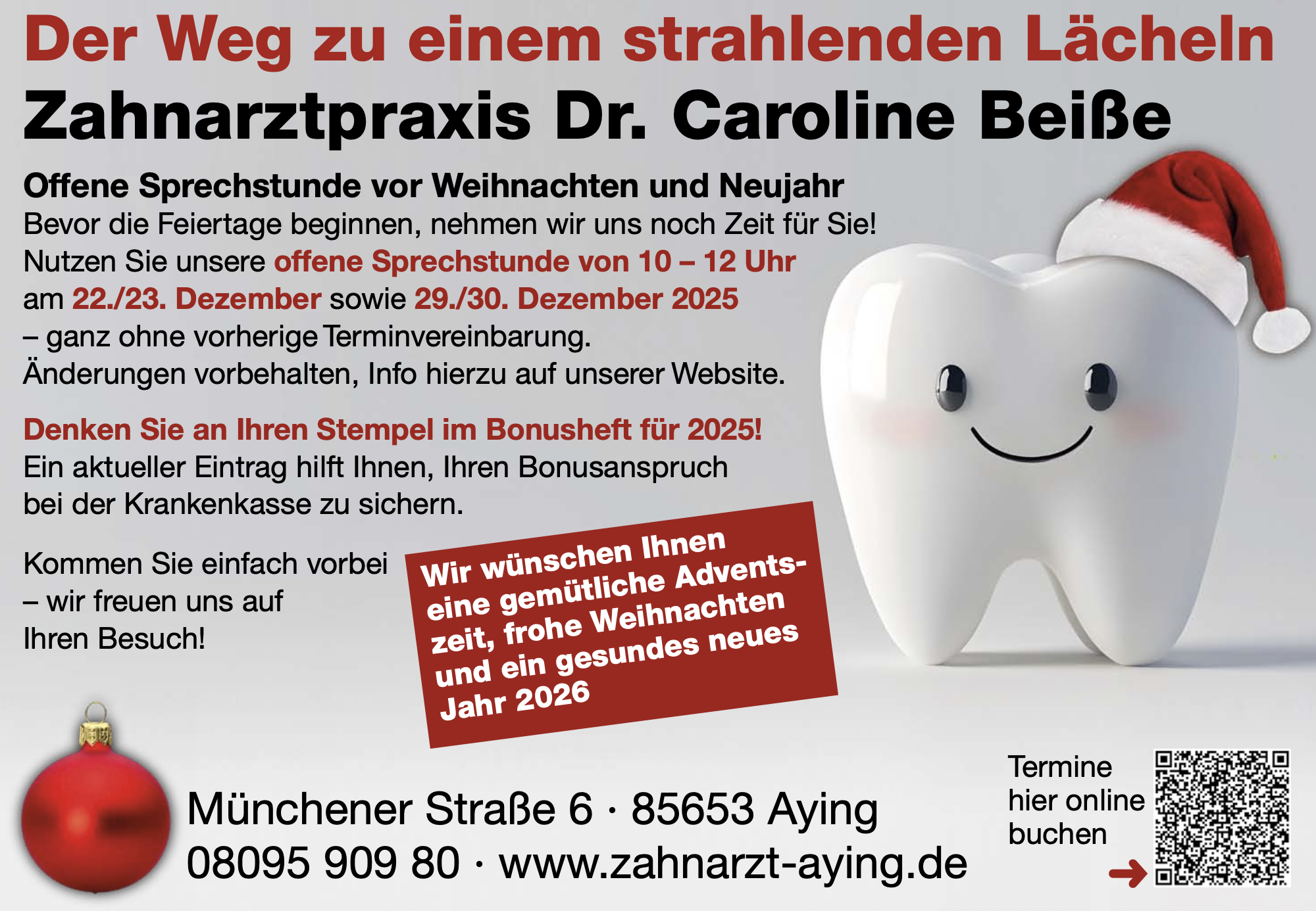 E-Mail an mail@zahnarzt-aying.de oder benutzen Sie unser Kontaktformular.